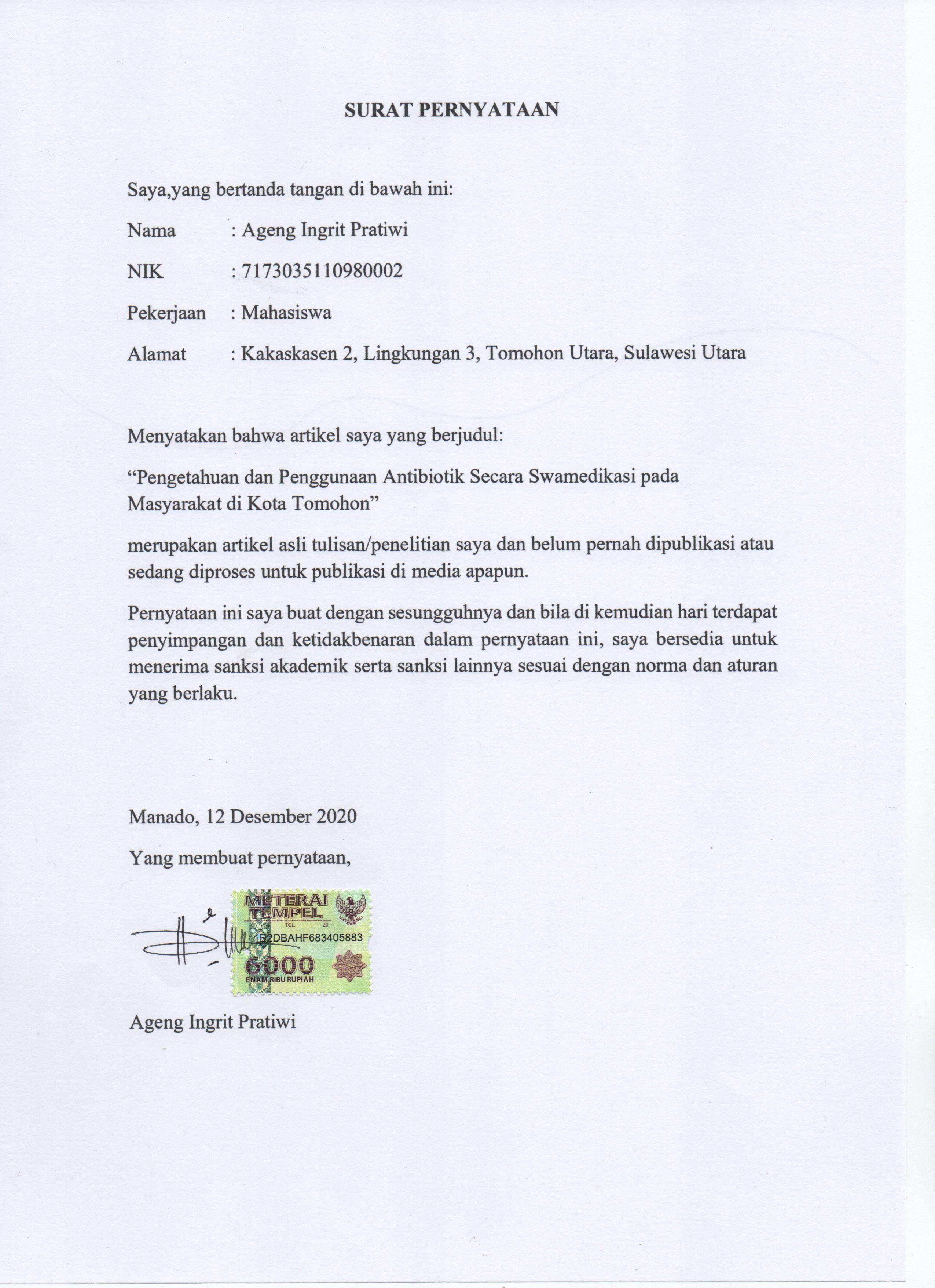 Kata kunci: Antibiotik, swamedikasi, pengetahuan, penggunaan.Downloads