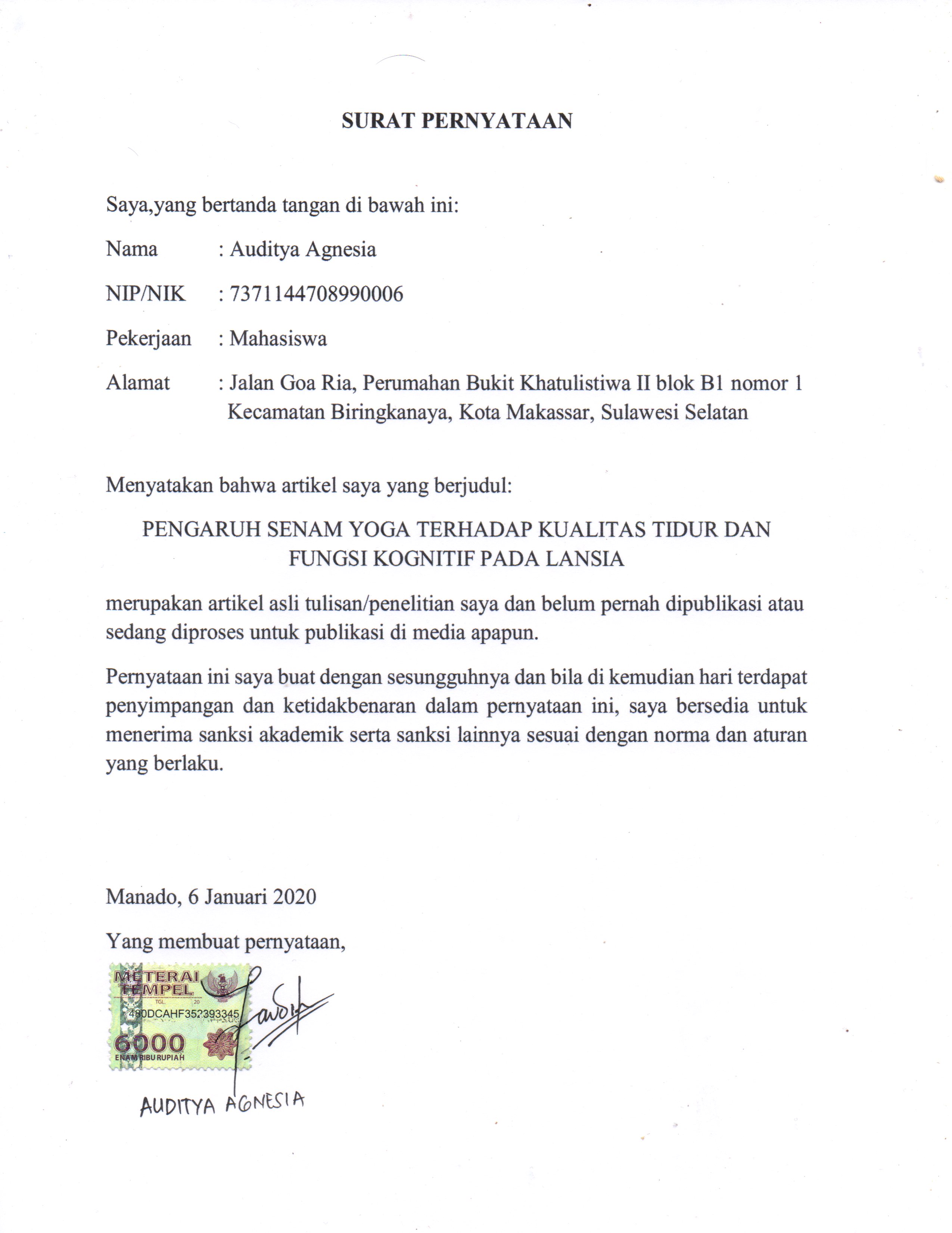 Kata kunci : senam yoga, kualitas tidur, fungsi kognitif, lansia
