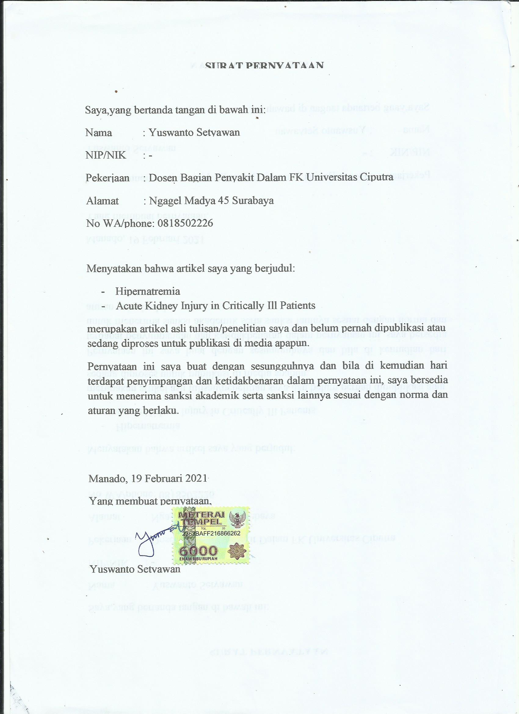 Abstract: Hypernatremia could be caused by loss of water (increased loss or decreased intake), and although rarely, due to over intake of natrium. Patients who are at risk of hypernatremia are those with disturbance of thirst or limited access of water. Several factors that could cause hypernatremia especially among geriatric patients are, as follows: change of thirst stimuli, decreased ability to concentrate urine, and decreased total body water. Clinical signs of hypernatremia are usually not specific, however, patients tend to become symptomatic if hypernatemia occurs acutely. Hypernatremia clinical signs are mostly neurological related to the severity and the change of serum sodium concentration. Complications of hypernatremia are inter alia shrinkage of brain tissue due to the movement of water from intracellular to extracellular fluid which results in injury of brain vessels, bleeding in the brain, and a variety of neurological signs due to brain involovement which could lead to death. Management of hypernatremia has to be carried out accurately and thoroughly because inaccurate or too-rapid correction could risk the occurrence of cerebral edema.