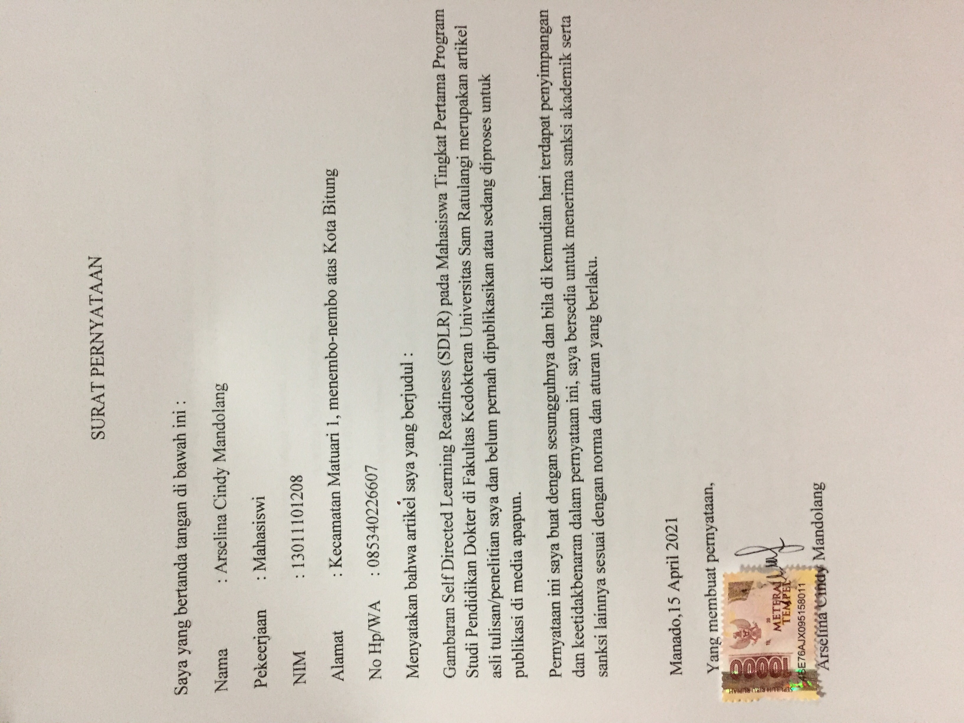 Kata kunci: self directed learning readiness (SDLR); pendidikan kedokteran